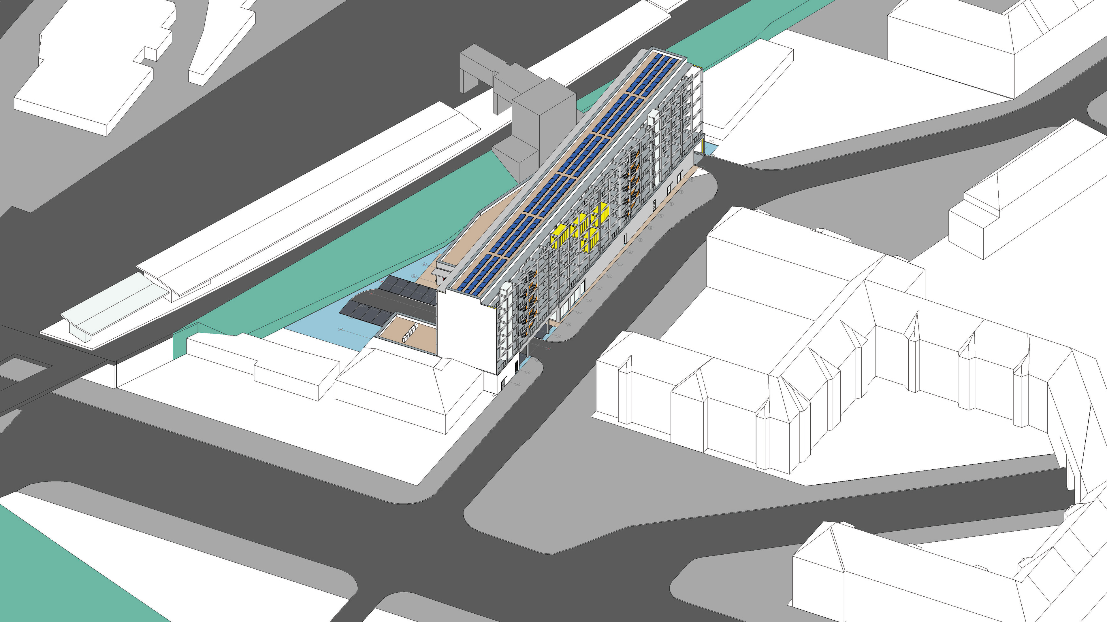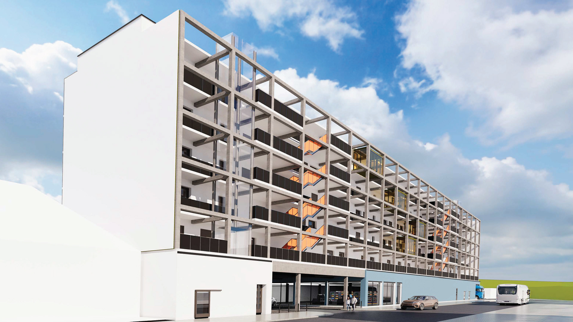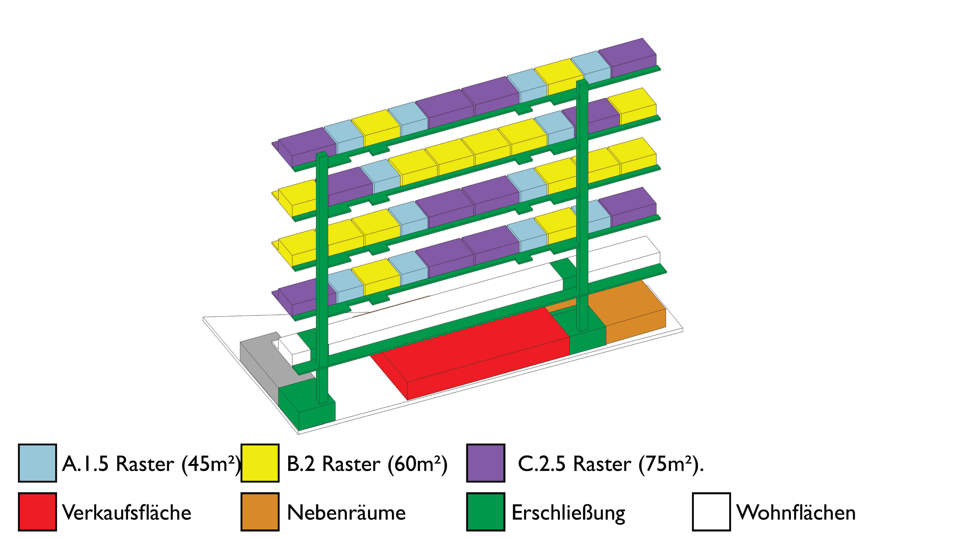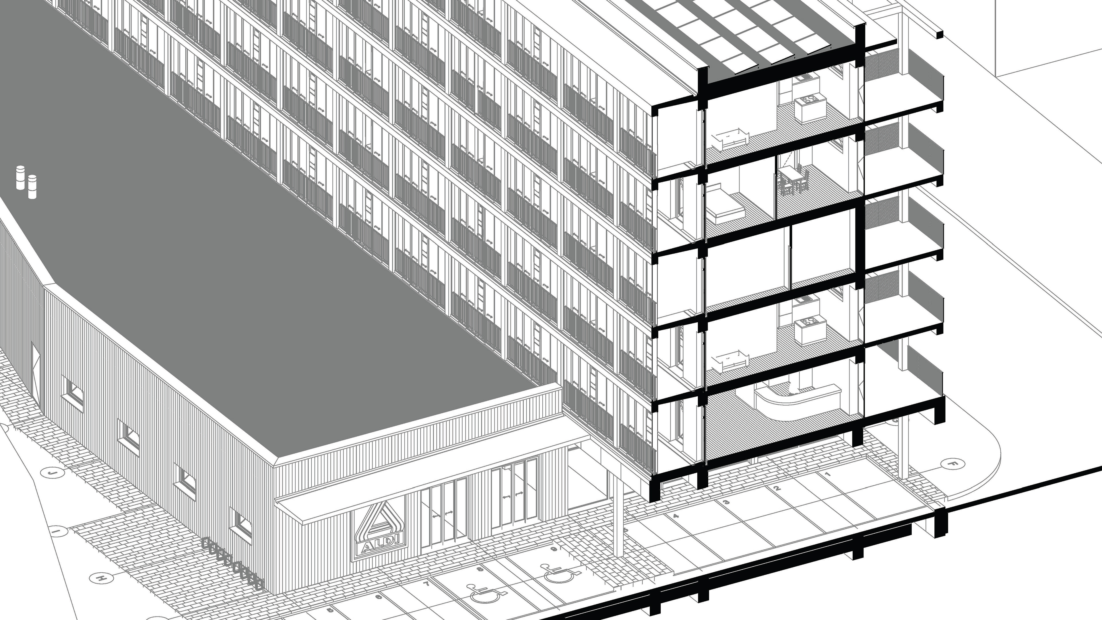 Im Rahmen des JOANES-Wettbewerbs 2024/25 entwickelt die Masterarbeit „Safespace – Gemeinsam wohnen über dem Markt“ ein skalierbares Modell für genossen- schaftliches Wohnen über einem Supermarkt. Ein Schutzgeschoss für vulnerable Gruppen ergänzt das Konzept zu einem sozial und städtebaulich integrativen Prototyp.